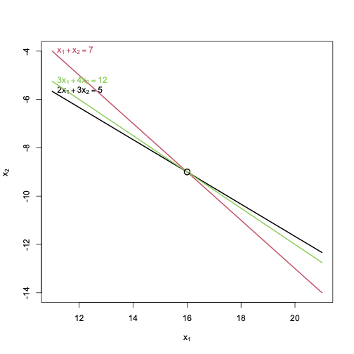 \[\begin{cases}2x_1 + 3 x_2 = 5\\ x_1 + x_2 = 7 \\ 3 x_1 + 4 x_2 = 12\end{cases}\]