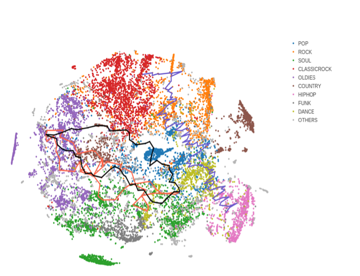 Objetivo: gerar playlists que passem de um estilo a outro de forma SUAVE. Playlists devem ser aleatórias, diferentes a cada dia.