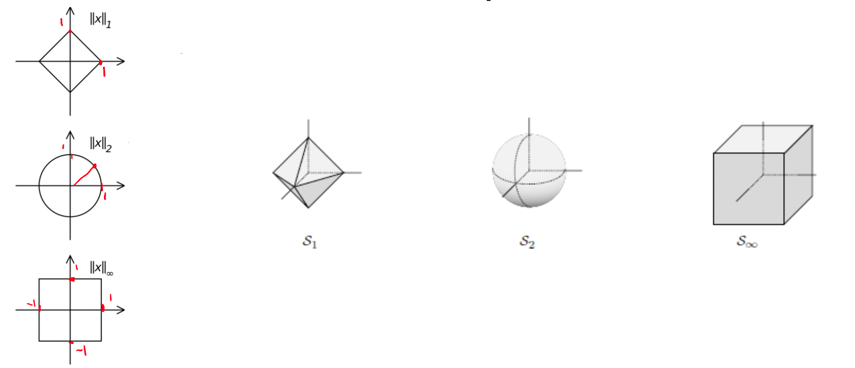 \(p<1\) também não é norma. Ex: \(p=1/2\) falha na desigualdade triangular pois \((1,0)\) e \((0,1)\) têm norma 1, mas a soma \((1,1)\) teria norma \(2^{1/p}=4>2\). Apenas \(1\le p\le \infty\) produz normas aceitáveis \(\Vert v \Vert_p\)