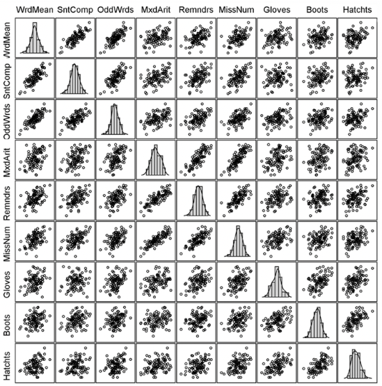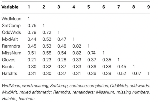 As 9 variáveis são escores obtidos em 9 testes de habilidade cognitiva: