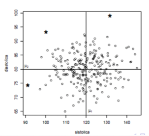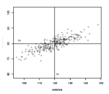 \[\begin{align} d(y_1,y_2) &= \sqrt{z_1^2 + z_2^2} \\ &= \sqrt{\left(\frac{y_1-120}{10}\right)^2 + \left(\frac{y_2-80}{2}\right)^2} \\ &= \sqrt{\left(\frac{y_1-\mu_1}{\sigma_1}\right)^2 + \left(\frac{y_2-\mu_2}{\sigma_2}\right)^2} \\ \end{align}\]