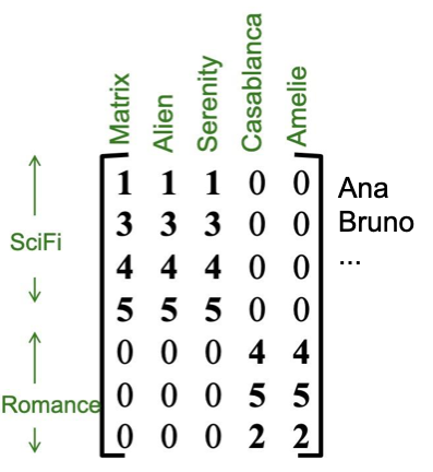 \[\underbrace{A}_{m\times n} = \underbrace{U}_{m\times m} \underbrace{\Sigma}_{m\times n}\underbrace{V^\top}_{n\times n}\]