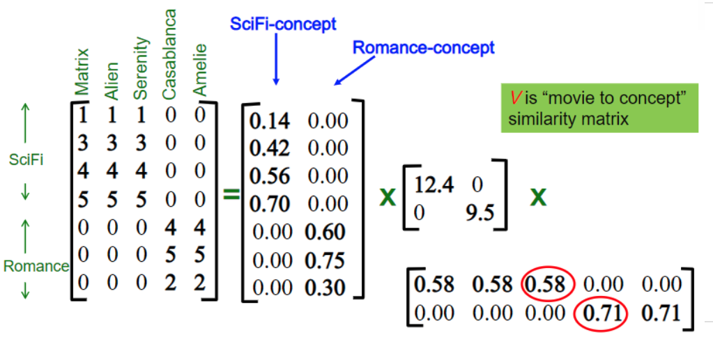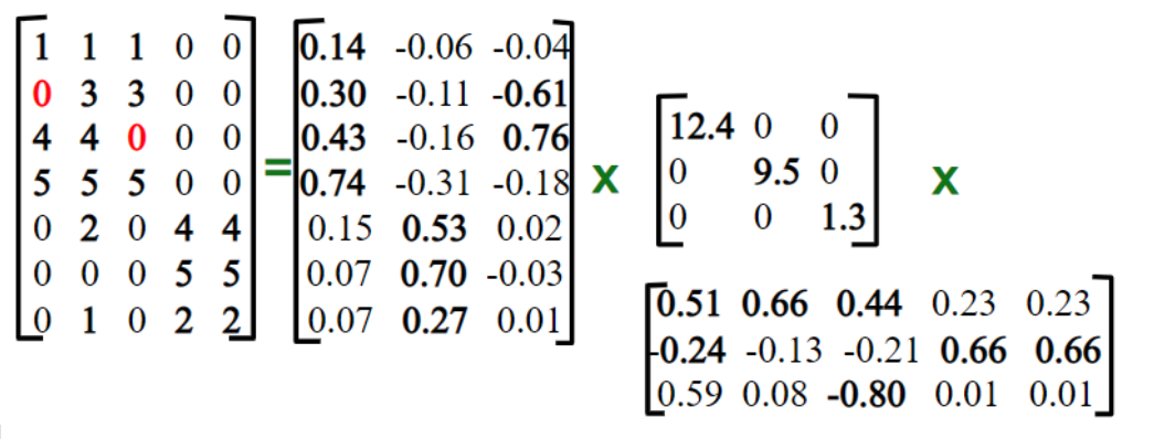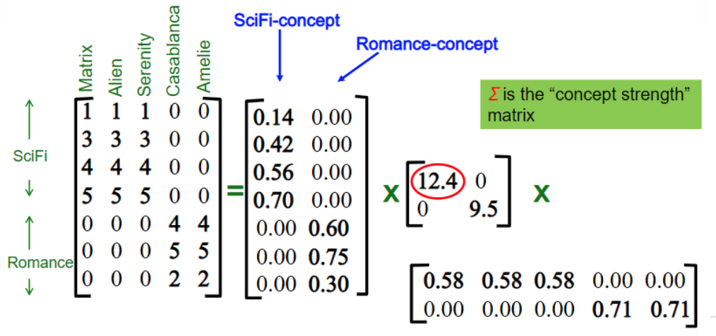 \[\underbrace{A}_{m\times n} = \underbrace{U}_{m\times r} \underbrace{\Sigma}_{r\times r}\underbrace{V^\top}_{r\times n}\]
