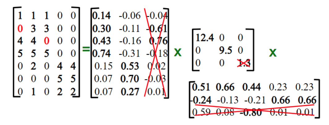 Ao realizar a multiplicação (após remover o menor valor singular)