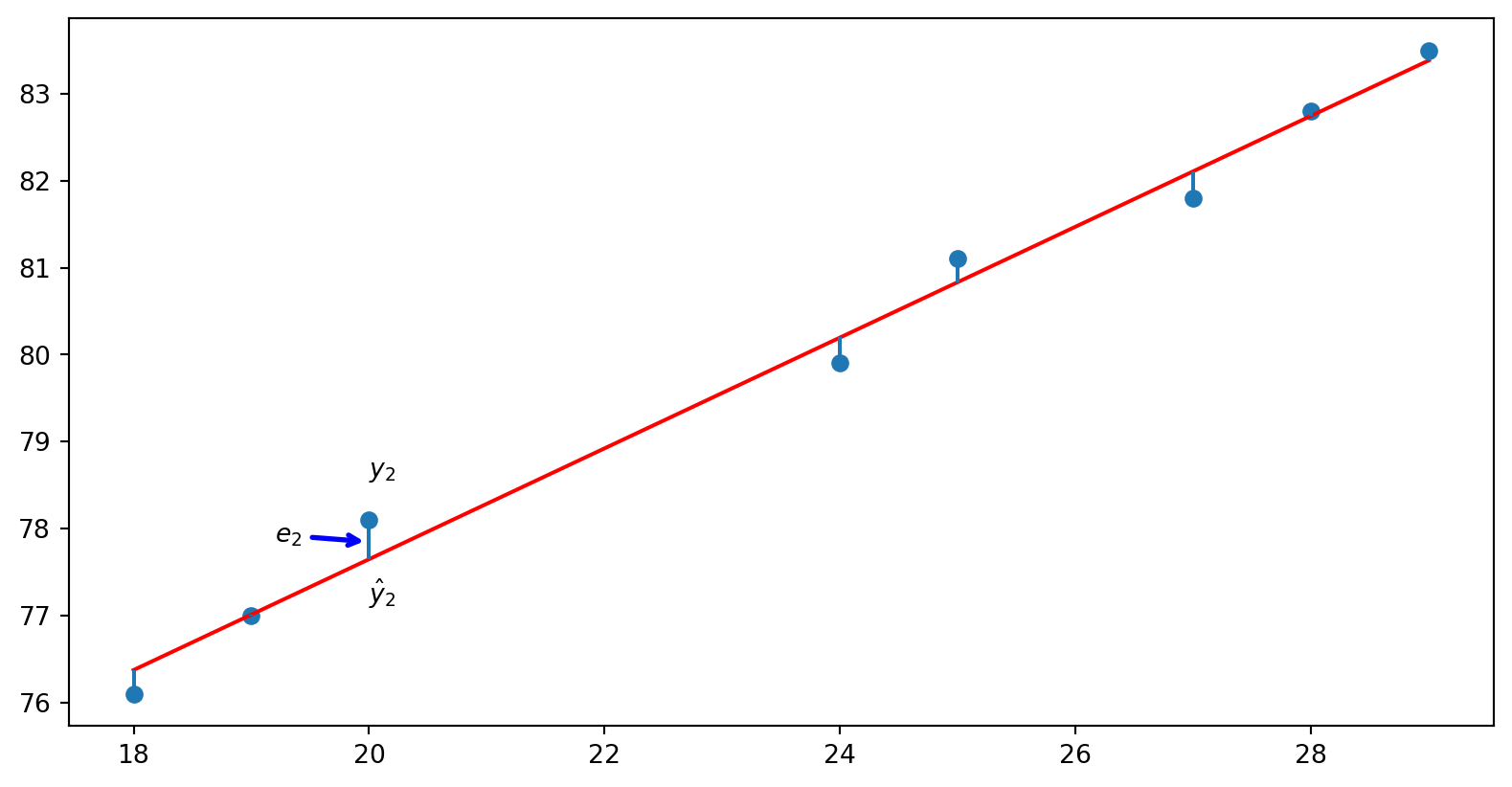 \[E = \sum_{i=1}^n (y_i -\beta_1x_0 - \beta_0)^2\]