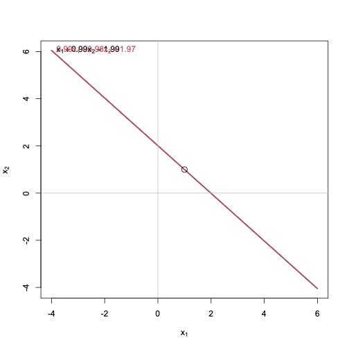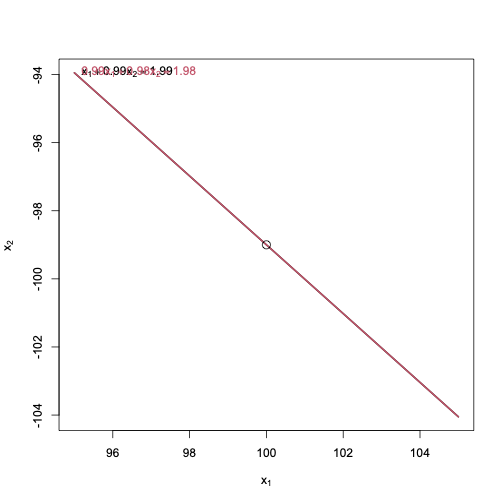 Variação na solução \(\delta x = \begin{bmatrix}2-1 & -1/99 -1\end{bmatrix}^\top\)
